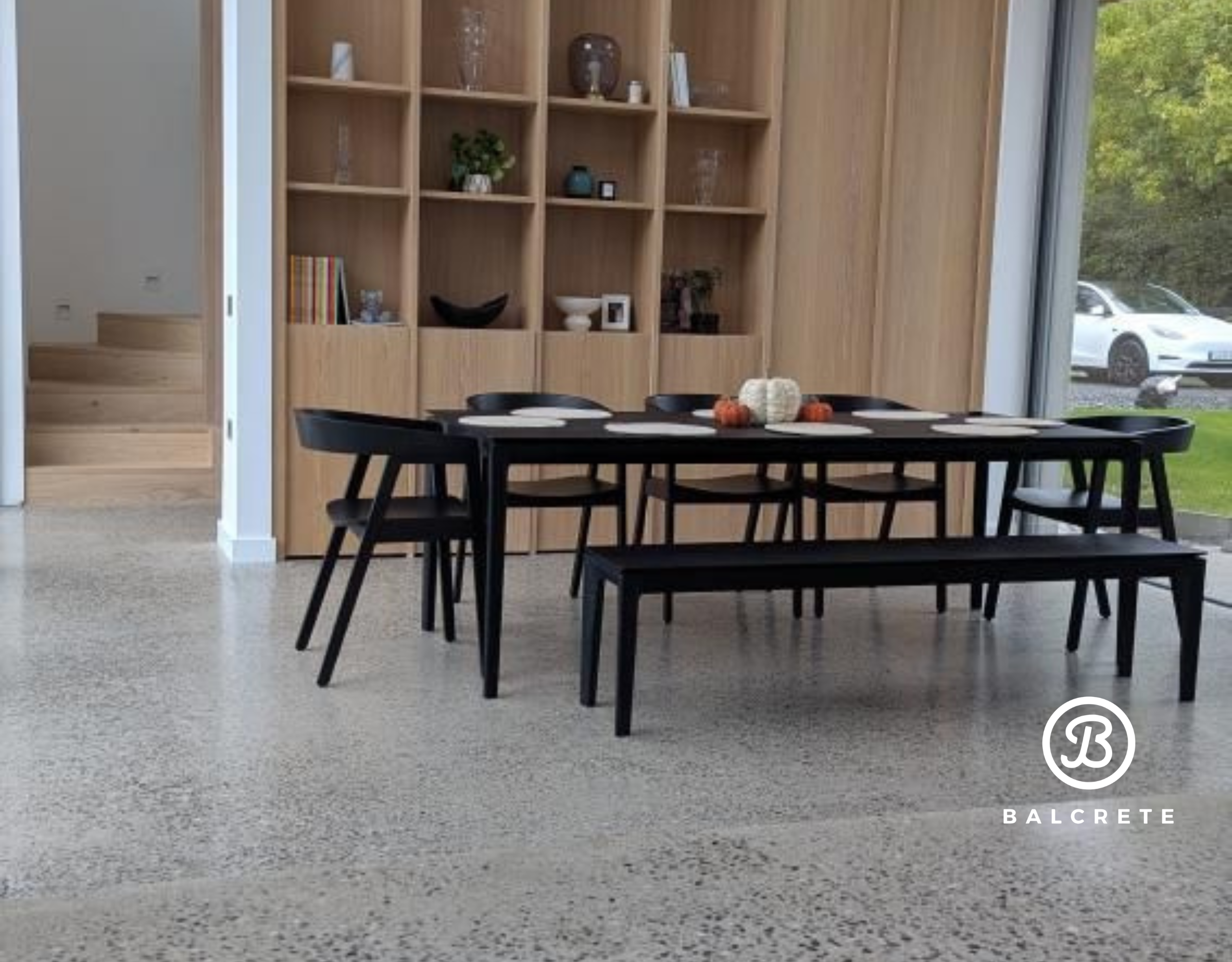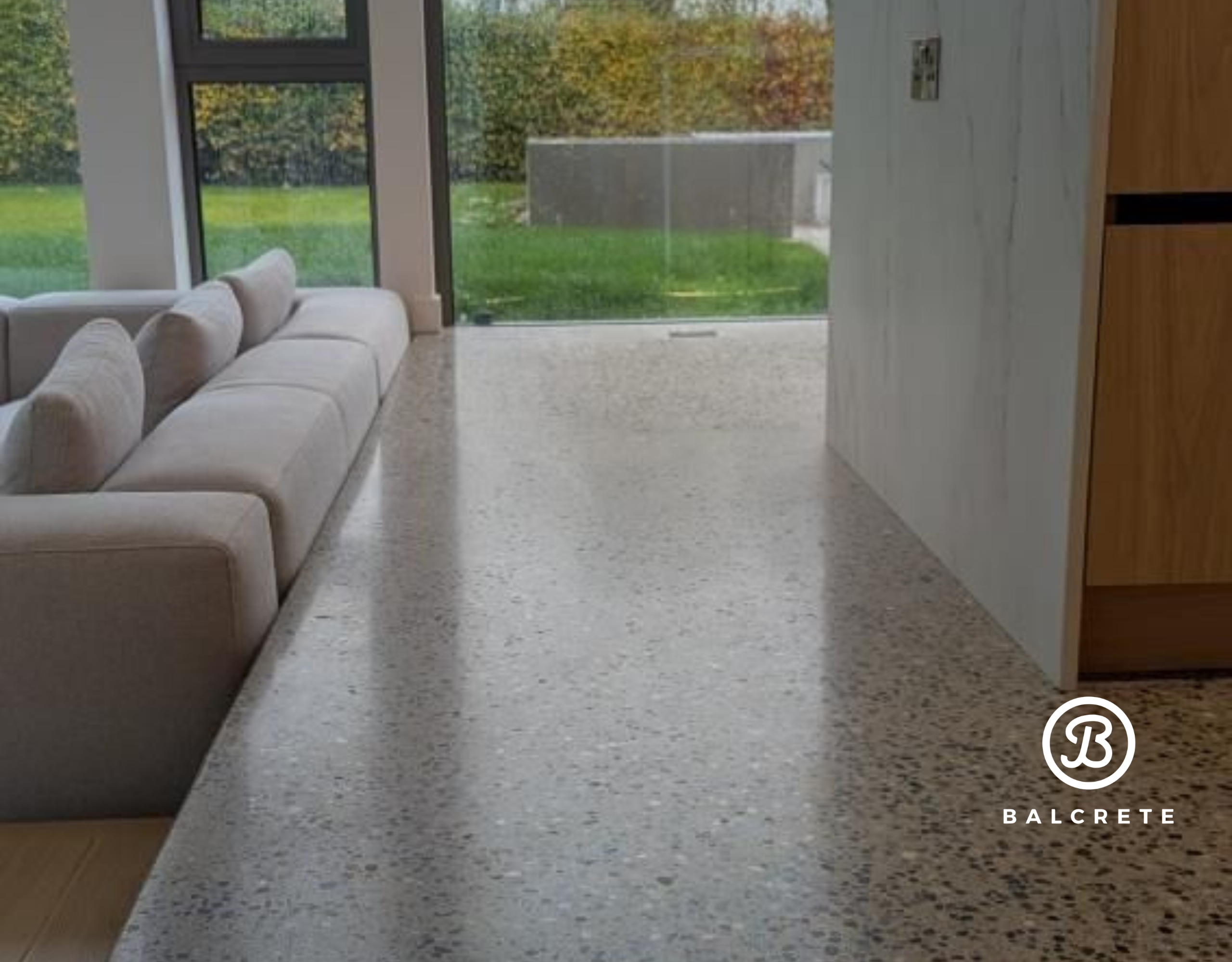 Balcrete poured the concrete and carefully cut the control joints for a new build in Co. Kildare. After allowing the concrete to set, we returned to complete the grinding, polishing, and sealing process, creating a stunning finish.
