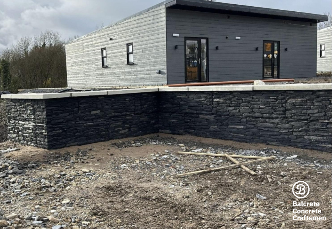 Balcrete supplied stone effect concrete blocks with bespoke wall caps, tailored to meet the specific needs of Pierforce Construction for a creche in Donegal Town. The stone effect blocks provide a charming and durable exterior, while the custom wall caps add a refined finishing touch.